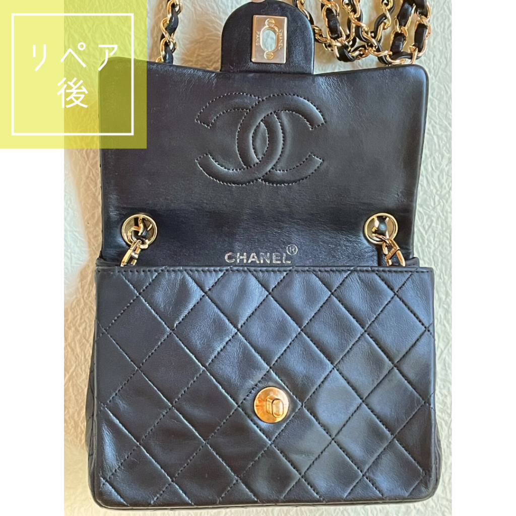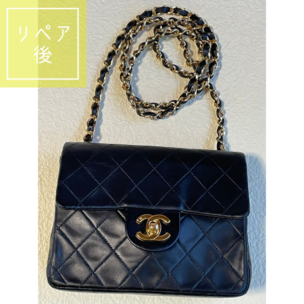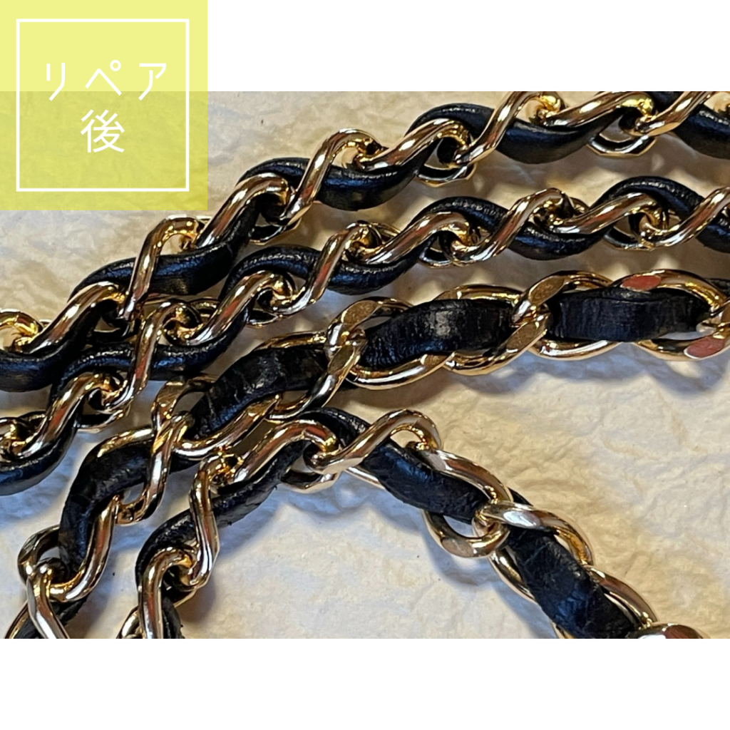 今回はレザーのリコートとショルダーチェーン再メッキ加工もご依頼いただきました。再メッキ加工したチェーンは、何度見てもハッとさせられる程の美しさ・輝きです☆