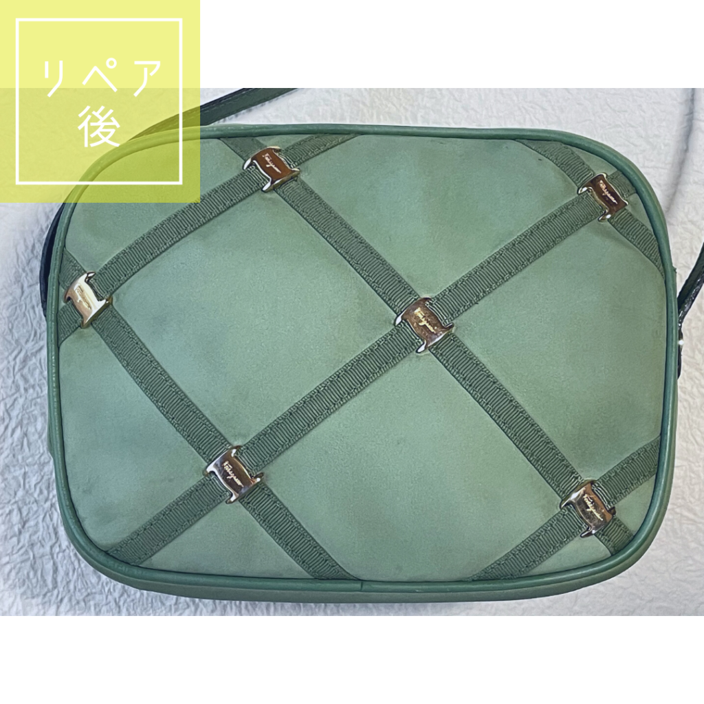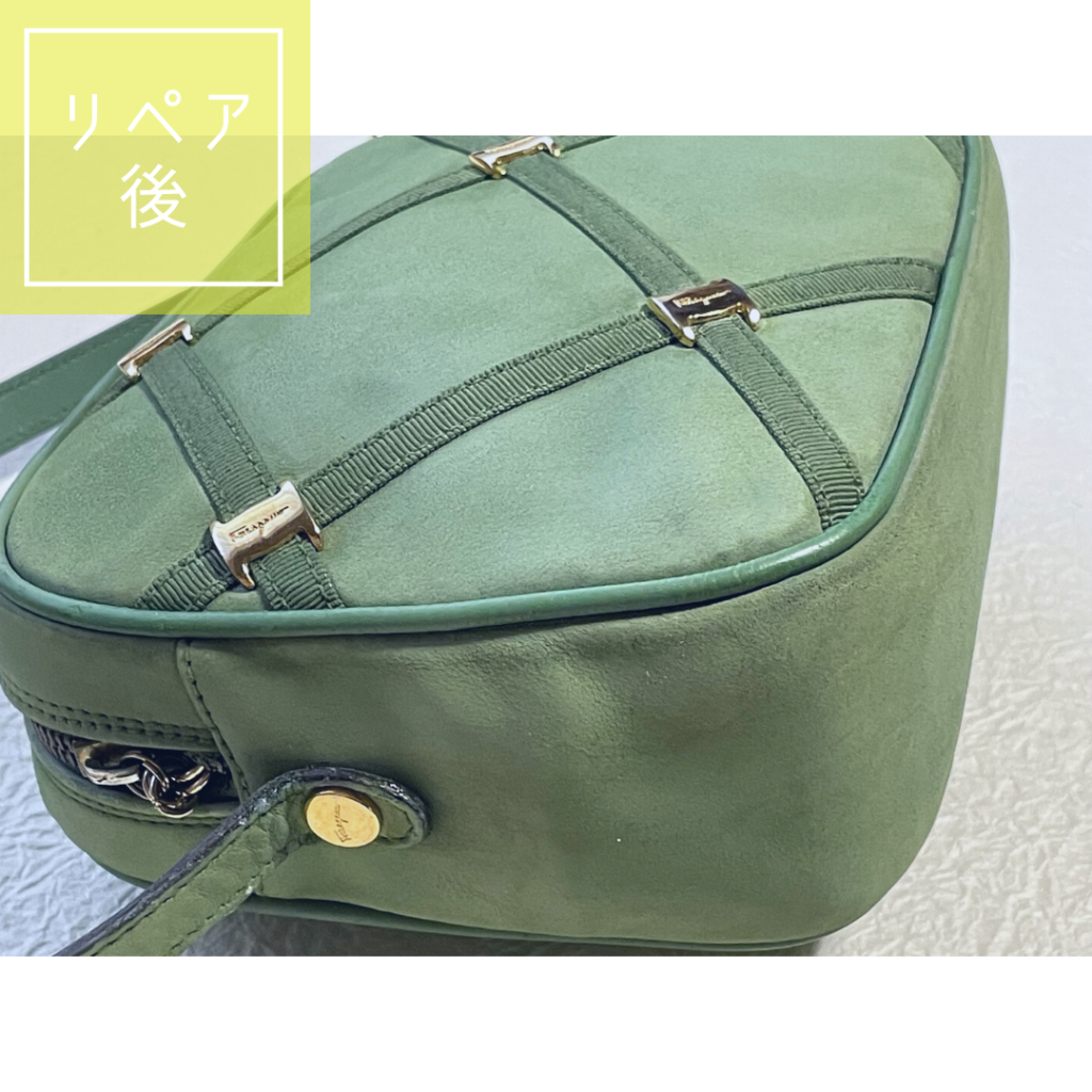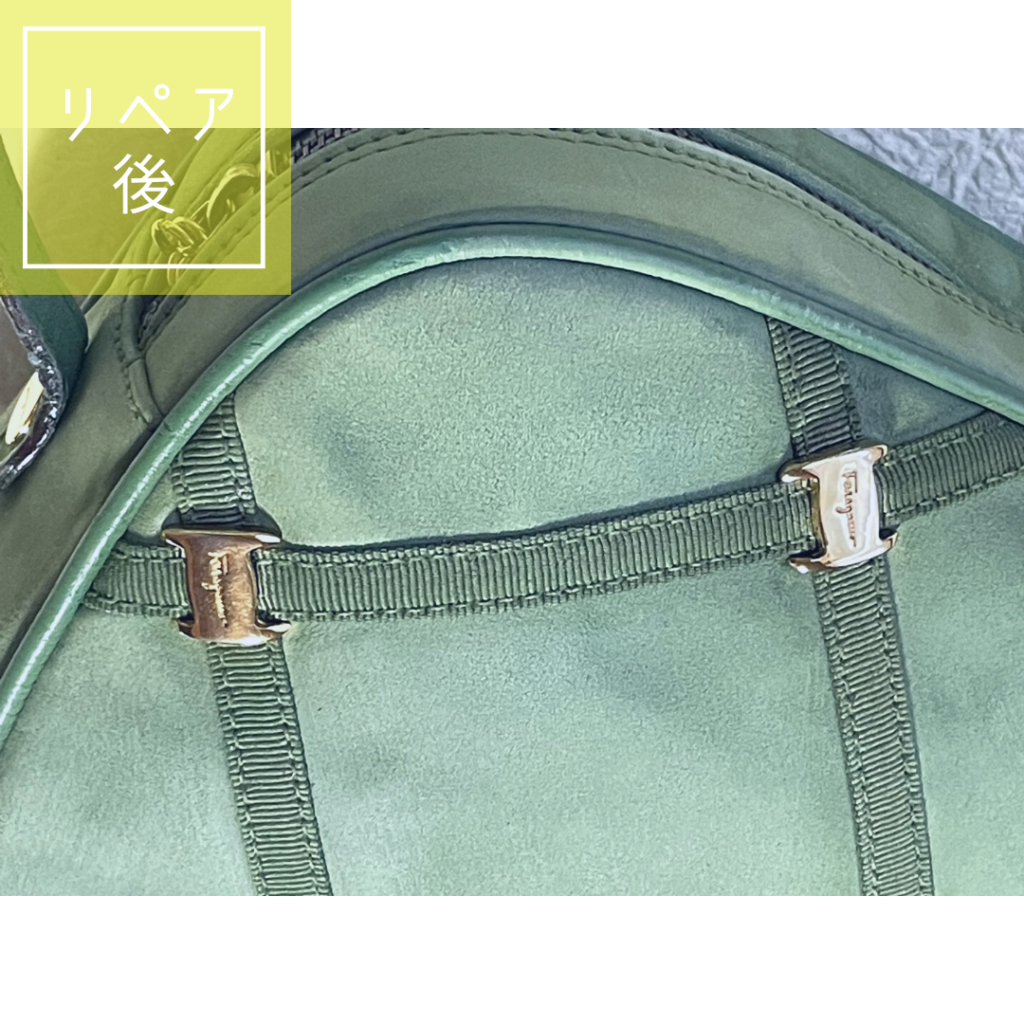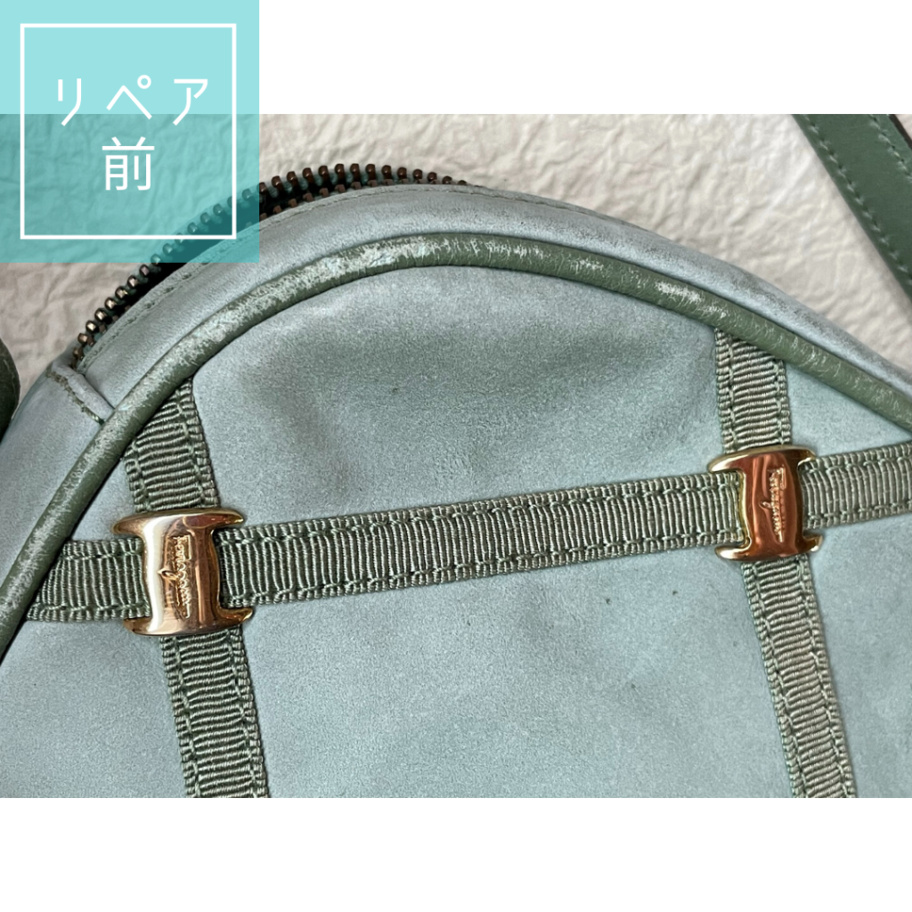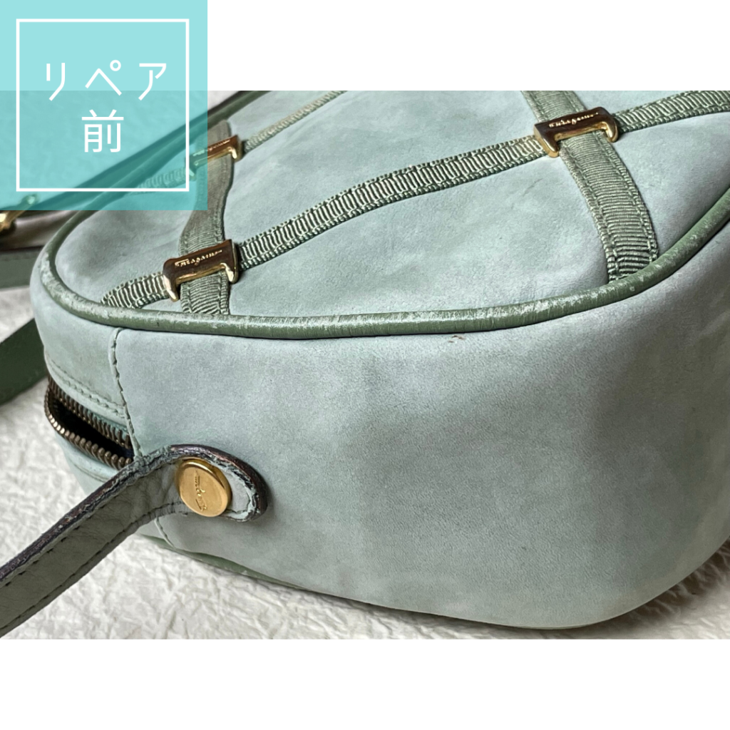今回はヌバック素材ということで、起毛リコートを行いました。起毛素材とはヌバックやスエード等のふさっとしている、けば立たせたレザーです。スムースレザーと違い、ふさっとしている分、それに対するカラーリペアもしっかり塗り、傷・汚れを隠すといったことが出来ません。クレンジング段階で落としきれない汚れなどは、カラーリペア段階でふんわり色付け、目立ちにくくするくらいのカバーになります。
